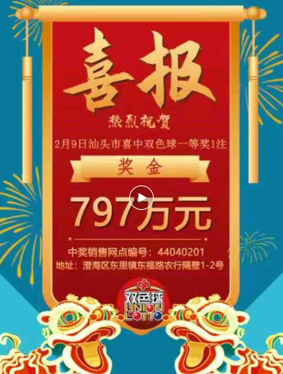 在2月9日,汕头市迎来了振奋人心的好消息,一位幸运彩民凭借一张双色球彩票,幸运中得一等奖!这注一等奖的奖金高达797万元,实在令人惊叹。