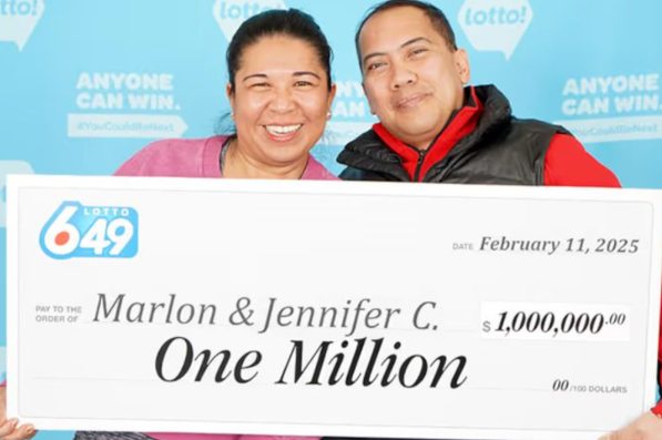 有时候,生活中的一次偶然决定可能会带来意想不到的好运。对于来自卑诗省温哥华的夫妻玛隆和詹妮弗·坎波萨格拉多来说,一张临时购买彩票的决定彻底改变了他们的人生。在一次超市购物时,这对夫妻突然决定多买一张 Lotto 6/49 彩票,结果在2025年2月8日的抽奖中,他们意外中得了100万加元!