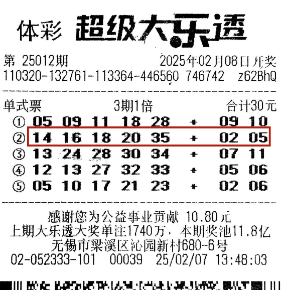 杨先生是位资深购彩者,这次中奖的彩票是一张多期投注的单式票,共投注了3期,2月7日购于无锡3202052333网点。该票上有5注号码,其中第二注“14、16、18、20、35+02、05”正好与2月10日开奖的大乐透第25013期中奖号码一致,幸运中得一等奖,奖金达到1000万元。杨先生提到,自己购彩多年,通常会根据历史开奖号码选号,近年来他喜欢采用多期投注的方式,因为这样一来,看准号码后可以一口气多投几期,十分方便。前几天,他觉得之前的多期投注已经结束,便打算再去网点购买彩票,没想到竟然中了千万大奖。谈到中奖后的心情,杨先生表示他依然保持平常心。
