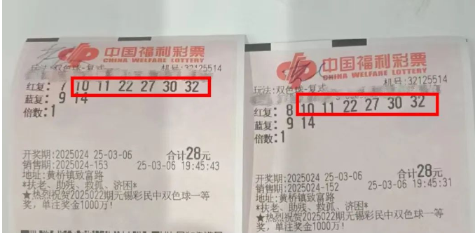 3月6日晚,福彩双色球第2025024期开奖,红球号码为10、11、22、27、30、32,蓝球为15。泰兴一位幸运彩民凭借两张“7+2”复式票,一举中得4注二等奖,总奖金超过69万元!中奖彩票来自泰兴市黄桥镇32125514号福彩投注站。