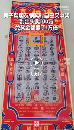 男子代朋友领100元刮刮乐赠票 排队时意外刮中100万元大奖
