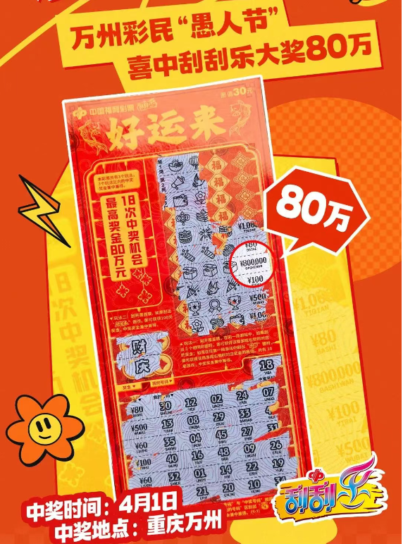 4月1日晚7点左右,万州彩民王先生(化姓)和妻子在当地一家投注站购买了5张刮刮乐“好运来”,没想到竟然幸运中得80万元大奖!