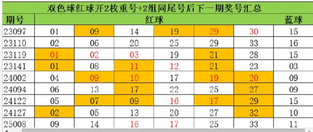 在今年的45次双色球开奖中,共计36次开出重号的情况,重号形态在今年双色球开奖中的火热程度可见一斑!此外上一期双色球奖号还开出2组同尾号,小编统计了近10次双色球2枚重号+2组同尾号开出后的下一期奖号,总结出以下几个特点,可供彩民参考。