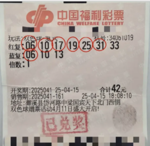 4月15日晚,福彩双色球第2025041期开奖。安徽省淮北购彩者凭借一张42元的复式“7+3”大奖票喜中1注一等奖,2注二等奖,以及固定奖20400元,奖金总额达733万余元。