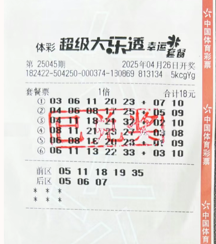 4月26日,大乐透第25045期开奖号码揭晓。前区号码为08、11、21、23、27,后区号码为03、08。本期一等奖共开出10注,分别分布在全国9个地区。湖北襄阳市南漳县的71087体彩店幸运中得1注一等奖,其中单注基本奖金为9199763元,单注派奖奖金为943396元,总奖金达到1014.31万元。次日上午,中奖者刘女士(化姓)现身湖北省体育彩票管理中心领取奖金。她表示,这张中奖的彩票是由丈夫林先生(化姓)购买的,由于工作繁忙,林先生委托她来领奖。