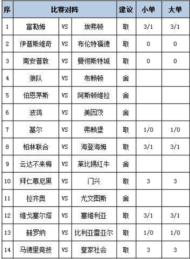 本期任九在5场英超+5场德甲+1场意甲+3场西甲的基础上舍弃了几场让步较浅的比赛:狼队上场在联赛中客场0-1不敌曼城,结束了自己6连胜的走势,状态回落,本场主场面对上场在联赛中主场1-1战平纽卡,最近2场未尝败绩,但是球队客场走势欠佳的布莱顿,机构给出在较少的让步幅度,对于狼队的主场气势还是信心不足,此役舍弃。