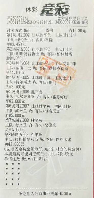 在竞彩2505091期开奖中,西安的李先生(化姓)幸运中得1005415.95元大奖!作为一名资深球迷,李先生已经有十多年购彩经验,平时热衷于观看球赛,也非常喜爱竞彩游戏,每期都参与。他将购彩视为观看比赛的调味剂,秉持着“中奖靠运气,看球才是真正的快乐!”的购彩理念。对他来说,购彩并不是任务,而是为热爱的赛事增添一份期待感。每场比赛前的小额投注让他更投入比赛;赛后与球友们分析赛果、畅聊心得,才是最大的乐趣。这次中奖对李先生来说是一个惊喜,而享受比赛、理性参与才是他一直以来的初衷。陕西体彩提醒大家,购彩应当是兴趣的延伸,而不是生活的负担。无论是自选、机选还是灵感投注,都应量力而行、适度参与,这样才能让热爱更加持久。将看球的热情转化为趣味参与,幸运或许会在不经意间降临!
