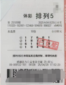 在体彩排列5第25109期中,开奖号码“6、1、9、7、9”揭晓。位于盐城市亭湖区长亭路1号的3209009122号体彩销售点传来喜讯,店内成功中出10注一等奖,每注奖金10万元,单票总奖金高达100万元。根据该销售点代销者的回忆,中奖者以随缘心态,选择了排列5随机4注10倍投注。开奖当晚,代销者立即核对中奖信息,发现网点中得了10注头奖,激动不已。代销者表示:“这是我们店开业以来排列5玩法的最大奖,真的很为中奖者高兴!”