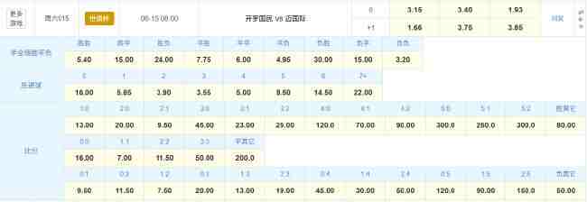 竞彩官方目前为本场世俱杯揭幕战开出了3.15(开罗国民胜)3.40(平局)1.93(迈阿密国际胜)的赔率组合。比分赔率中,双方1-1战平的赔率为1赔7.00最低,迈阿密国际2-1赢球的赔率为7.50紧随其后,开罗国民2-1和迈阿密国际1-0赢球的赔率同为9.50。可以看出,迈阿密国际坐拥东道主之利,面对非洲冠军开罗国民来说具备一些优势。当然竞彩对于开出单关推荐,对于开罗国民赢球的防范也很到位。