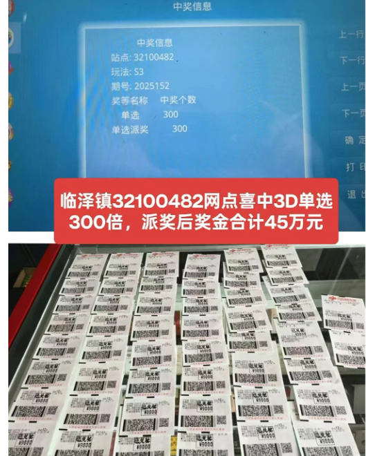 6月11日,福彩3D游戏第2025152期的开奖号码为210。临泽镇32100482网点喜气洋洋,幸运地中得45万元大奖。据了解,中奖者采用了单选倍投的方式,该网点当期总共中出300注单选,恰逢3D游戏8000万元大派奖活动,派奖后每注单选奖金为1500元,总奖金达到45万元。