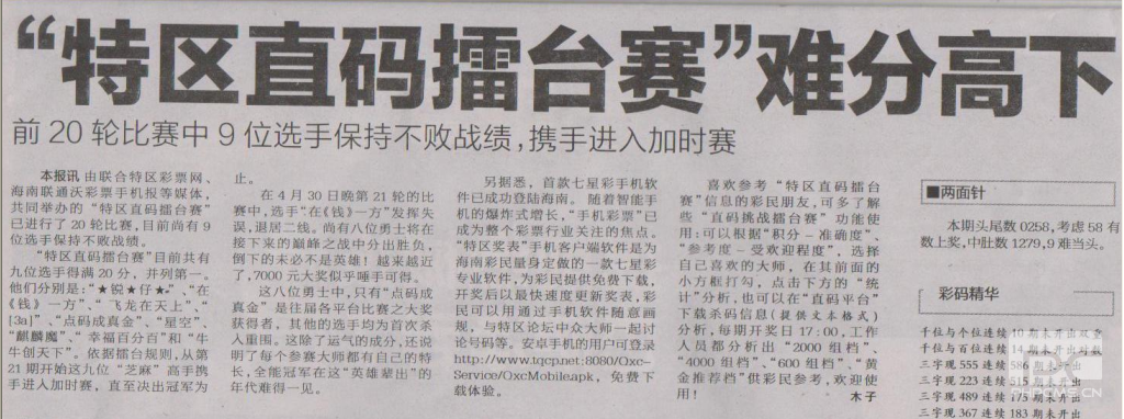 “特区直码擂台赛”八高手争夺大奖