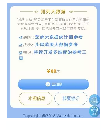 关注我们平台的公众号“特区七星论坛”、“微彩传媒”、“一品传媒特区奖表”-----点击左边菜单-----进入“排列俱乐部”------底部有新增栏目(如上图)---购买后即可查看当期信息!