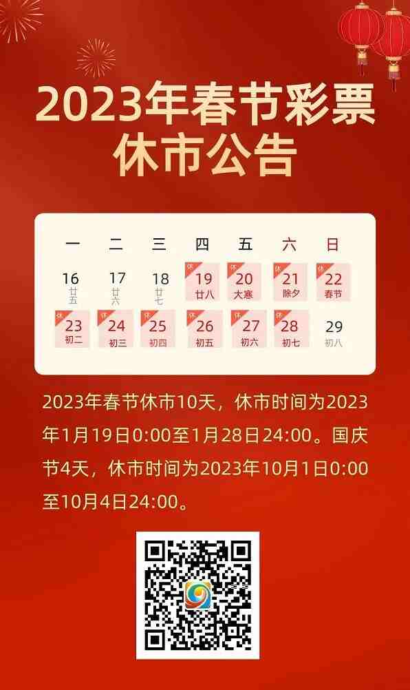 关于2023年彩票市场休市安排的公告