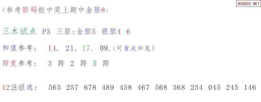 22033期 排列三三木试点体彩三胆推荐上期中金胆8