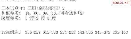 22065期 排列三三木试点三胆推荐上期中银胆1和值12