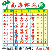 “南海椰风”第1336期推荐版局规律,本期千位16走三步.