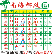 “南海椰风”第136期推荐版局规律,本期千位“27”走第三步.