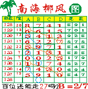 “南海椰风”第138期推荐版局规律,本期百位“27”走第三步.