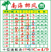 “南海椰风”第140期推荐版局规律,本期十位“49”走第三步.