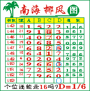 “南海椰风”第153期推荐版局规律,本期个位走“16”第三步.