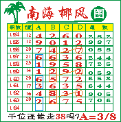 “南海椰风”第164期推荐版局规律,本期千位走“38”第三步.