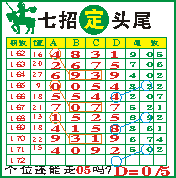 “七招定头尾”第172期推荐版局规律,本期个位站“05”走第三步.