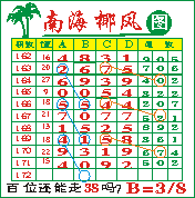 “南海椰风”第172期推荐版局规律,本期百位“38”走三步.