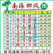 “南海椰风”第190期推荐流水规律,本期百位05走三步.