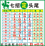 “七招定头尾”第192期推荐版局规律,本期主攻头加27等于十位走第三步.