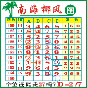 “南海椰风”第195期推荐版局规律,本期个位27走三步.