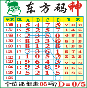 “东方码神”第196期推荐此隔板规律,本期个位站“05”走第三步.