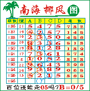 “南海椰风”第196期推荐版局规律,本期百位05走三步.