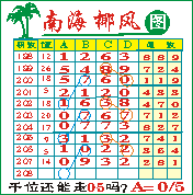 “南海椰风”第1208期推荐版局规律,本期千位05走三步.
