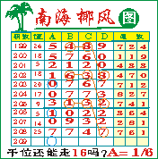 “南海椰风”第1209期推荐版局规律,本期千位16走三步.