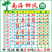 “南海椰风”第1210期推荐版局规律,本期千位38走三步.