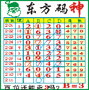 “东方码神”第1211期推荐此隔板规律,本期百位站“3”走第三步.