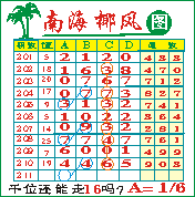 “南海椰风”第1211期推荐版局规律,本期千位16走三步.