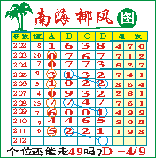 “南海椰风”第1212期推荐版局规律,本期个位49走三步.