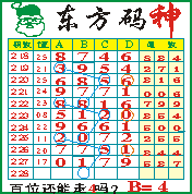 “东方码神”第1228期推荐此隔板规律,本期百位站“4”走第三步.