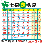 “七招定头尾”第1228期推荐版局规律,本期主攻38头走第三步.