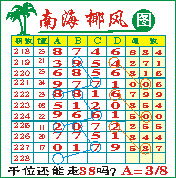 “南海椰风”第1228期推荐版局规律,本期千位38走三步.