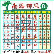 “南海椰风”第1230期推荐版局规律,本期千位49走三步.