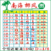 “南海椰风”第1232期推荐版局规律,本期个位16走三步.