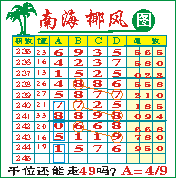 “南海椰风”第1245期推荐版局规律,本期千位49走三步.