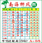 “南海椰风”第1345期推荐版局规律,本期千位05走三步.