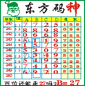 “东方码神”第1250期推荐此隔板规律,本期百位站“27”走第三步.