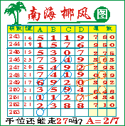 “南海椰风”第1253期推荐版局规律,本期千位27走三步.