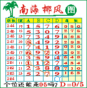 “南海椰风”第1254期推荐版局规律,本期个位05走三步.