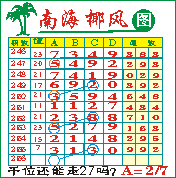“南海椰风”第1256期推荐版局规律,本期千位27走三步.
