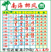 “南海椰风”第1258期推荐版局规律,本期千位49走三步.